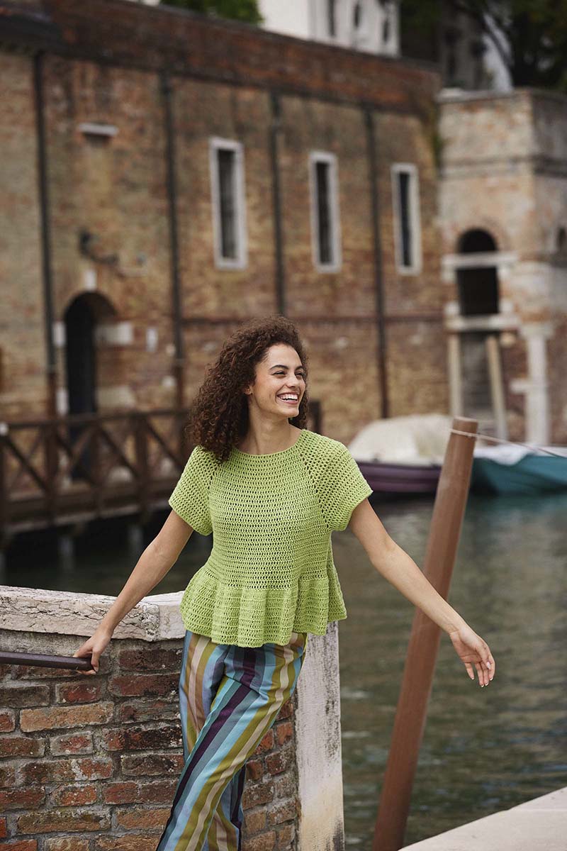 289-13 Modèle Celebration Gilet manches courtes en Topdown en Wool Addicts by Lang Yarns Whisper