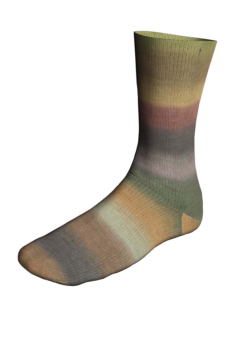 Les chaussettes jumelles avec deux dégradés de couleurs identiques dans une pelote. Commencez la première chaussette en prenant le fil par l‘intérieur de la pelote. Au bout de 200 m, vous trouverez une partie de fil non teintée. Coupez cette partie de fil. C‘est juste après que commence le même dégradé de couleurs pour la seconde chaussette. Bon travaux d‘aiguilles avec vos TWIN SOCKS !